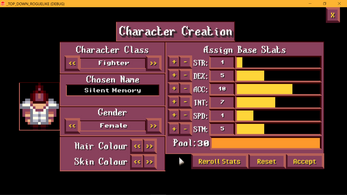 - 2D tile-based game world, with pixel-art graphics inspired by classic RPG's such as Darkspyre and Ultima